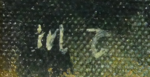キャンバス裏に光風会などで活躍した画家長峰勇の裏書あり
