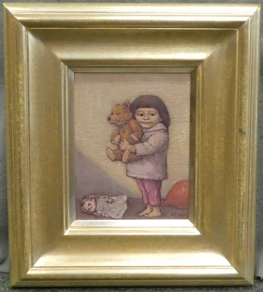 相笠昌義 『テディベアを抱く童女』 油絵F0号
