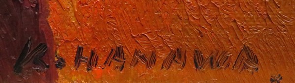 はなわ・けんぞう 1916年茨城県生まれ 福田義之助に師事 日本アンデパンダン展入選、二科会創立35周年記念賞 二科会理事 道化師をモチーフとした作品を多く描きピエロの画家として知られる 1986年歿