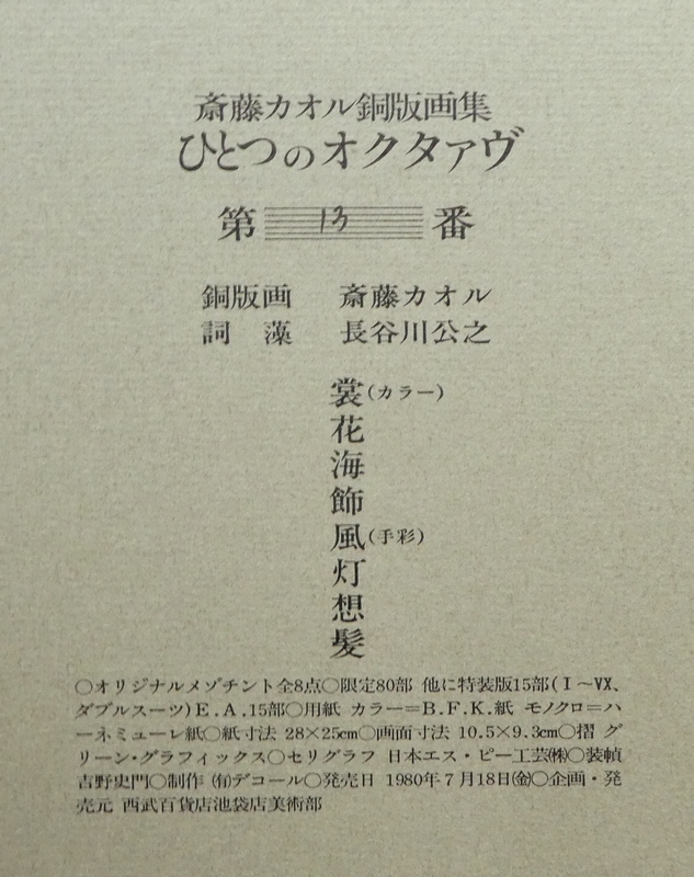 斎藤カオル 『ひとつのオクタァヴ』 銅版画集