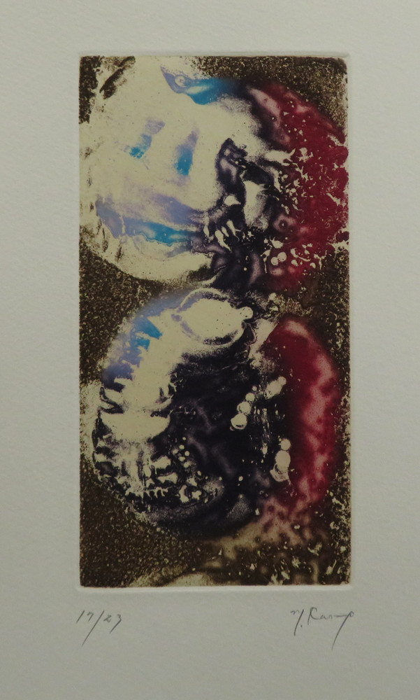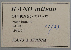 かのう・みつお 1933年東京生まれ 19歳の頃より独学で銅版画をはじめる 1956年初個展 日本国際美術展優秀賞、東京国際版画ビエンナーレ展近代美術館賞など 1980年代には油彩作品などもはじめ、詩人との共作や舞台美術、書籍の装丁など幅広く活動 |