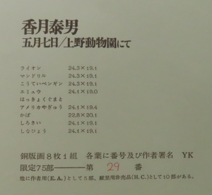 香月泰男 『五月七日/上野動物園にて』 銅版画