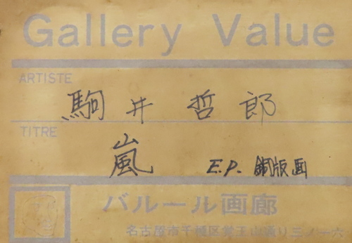 こまい・てつろう 1920年東京生まれ 東京美術学校卒 エッチング研究所に銅版画の技法を学ぶ 文展入選など 1953年に浜口陽三らと日本銅版画家協会を設立 東京芸術大学教授 フィレンツェ美術アカデミアの名誉会員 春陽会会員 1976年歿 |
