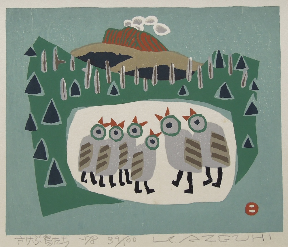 あぜち・うめたろう 1902年愛媛県生まれ 平塚運一に師事 国画会展・国画奨学賞、日本版画協会展・H賞受賞 愛媛県教育文化賞、愛媛新聞社賞受賞 個展多数開催 日本版画協会名誉会員 国画会会員 1999年歿 |