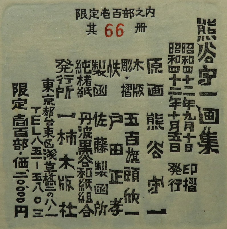 くまがい・もりかず 1880年岐阜県生まれ 東京美術学校卒 1930年代より墨絵を描き始め、晩年は書も書いた 1940年代から後に「熊谷様式」と呼ばれる独特な平面構成の作品を手掛けるようになる 1947年二紀会創立に参加、後に退会し無所属 孤高の画家・画壇の仙人と称される 1977年歿 |