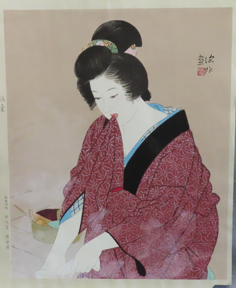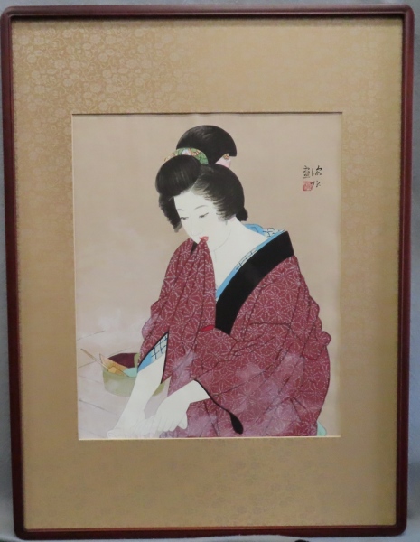 いとう・しんすい 1898年東京生まれ 鏑木清方に師事 文展、院展、帝展などで活躍 日本芸術院賞 美人画家としての地位を確立し、浮世絵版画も手掛けた 日展顧問 日本芸術院会員 1972年歿 |