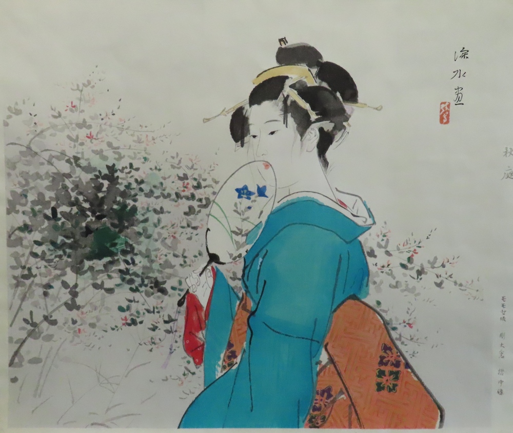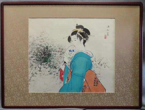 伊東深水 『秋庭』 木版画