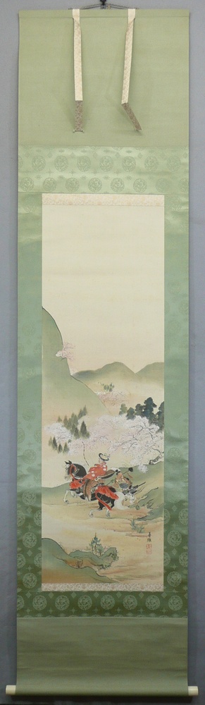絹本 共箱 軸先: 骨