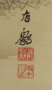 絹本 軸先:象牙