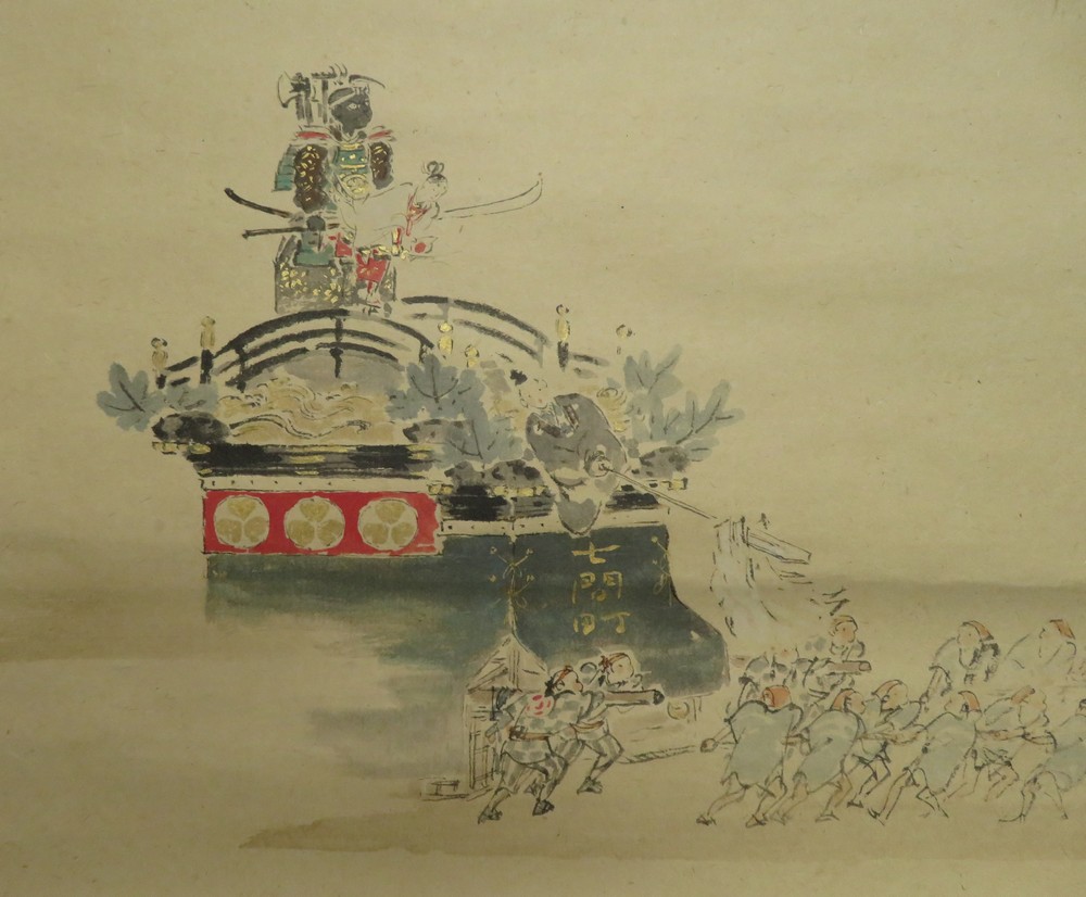 名古屋東照宮祭の山車(別名橋弁慶車)が描かれた掛軸です