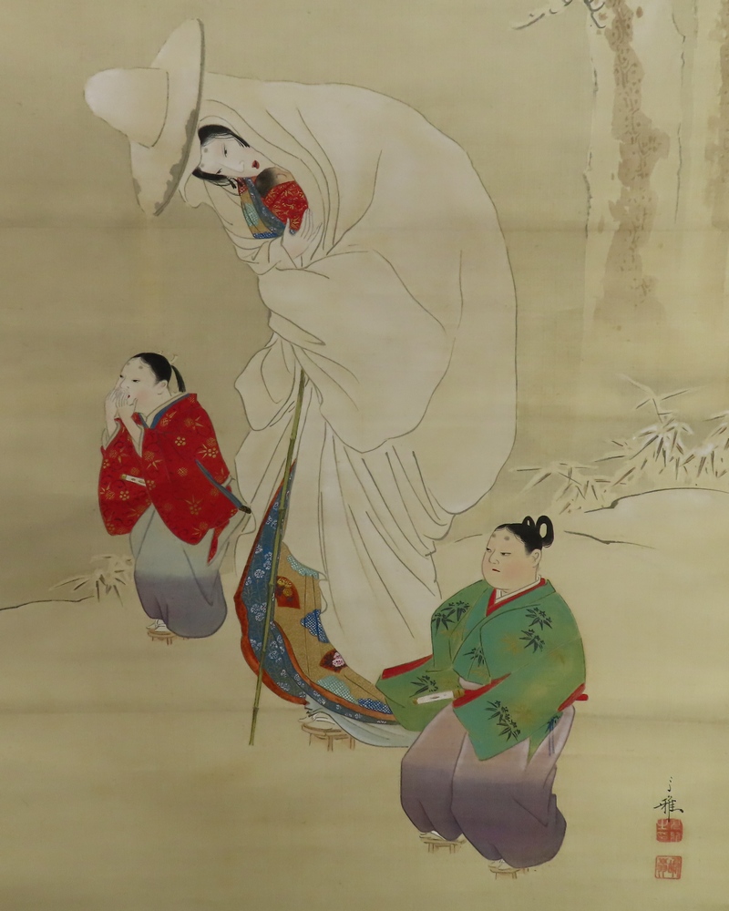 もり・たかまさ 1791年名古屋生まれ はじめは玉僊を名乗り尾張藩の浮世絵師として活躍 1834年に土佐派の絵師へ転向し高雅を名乗る 別号に蝦翁など 浮世絵を牧墨僊に、狩野派の技法を吉川一渓、南画を中林竹洞に師事 美人画を得意とし、尾張の名士の肖像や名所などの風俗画も多く手掛けた 1864年歿 |