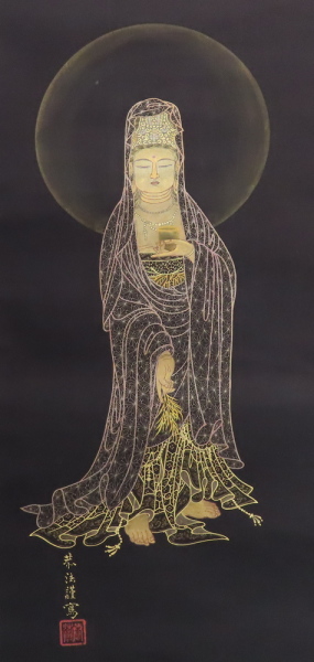おくむら・きょうほう 慶応元年愛知県生まれ 鬼頭道恭に師事 道恭亡き後、仏画の第一人者と称せられ、各博覧会に出品して銀賞銅賞を受け、また褒章される 昭和10年には元老大家として中京画壇に重きをなした |