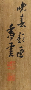 やまもと・ばいそう 1846年愛知県生まれ 貫名海屋、三谷雪エンに師事 山水を最も得意とし、晩年は彩色花鳥もよく描いた 中部で初めての文展審査員も務めた 1921年歿 |