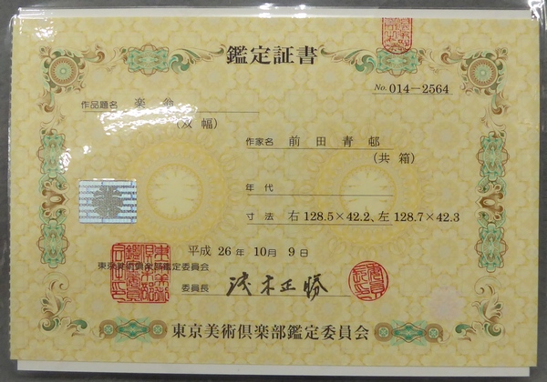 まえだ・せいそん 明治18年岐阜県生まれ 梶田半古に師事 巽画会・紅児会に参加し、小林古径・安田靫彦と共に日本美術院の三羽ガラスといわれた 帝国美術院会員・帝室技芸員・日展審査員 東京芸術大学名誉教授 文化功労者 文化勲章受章 昭和52年歿 |