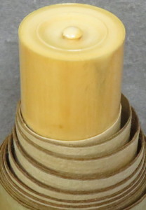 本紙、表具とも経年の状態で、軸芯の錘部分が膨らんでおり、その接触部にイタミがあります |