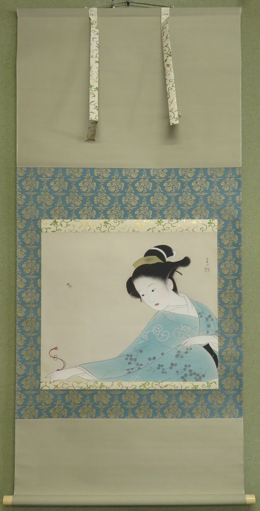 なかむら・ていい 明治33年大阪生まれ 長谷川貞信、北野恒富に師事 幼時に両手に火傷を負い、指の自由を失ったため、絵筆を両手にはさむ合掌執筆により、情緒豊かで優美な美人画から、戦後は現代的風俗を内面性豊かにとらえた人物画を描いた 日本美術院理事 日本芸術院賞 昭和57年歿 |