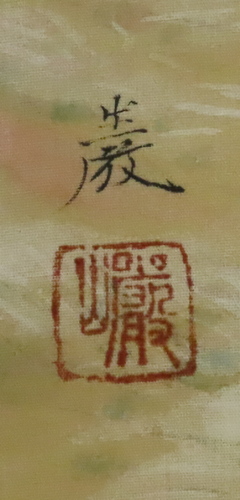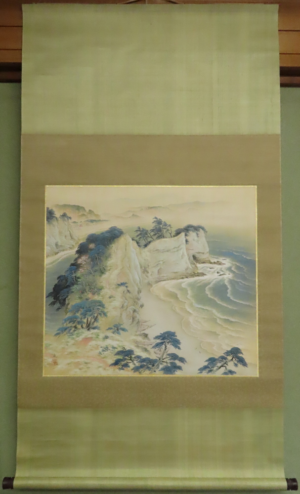 絹本 軸先:木