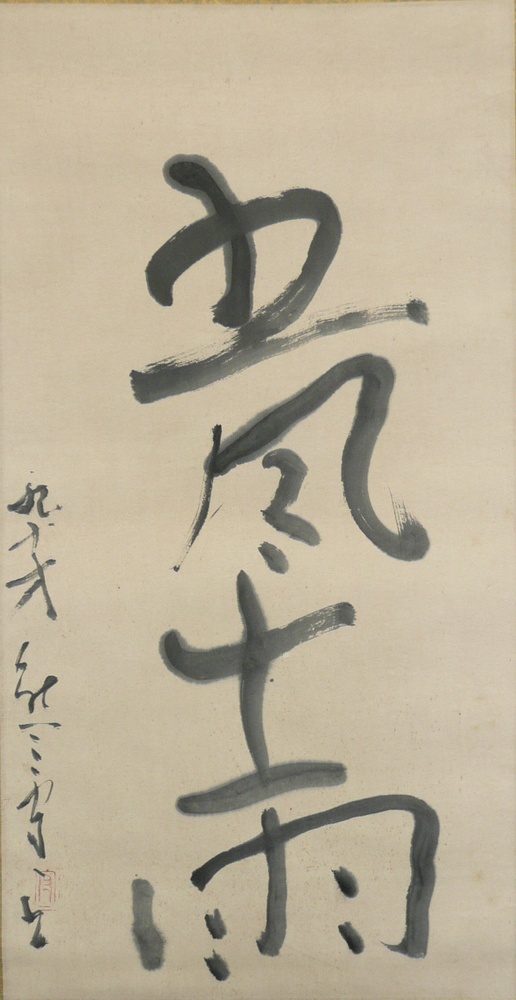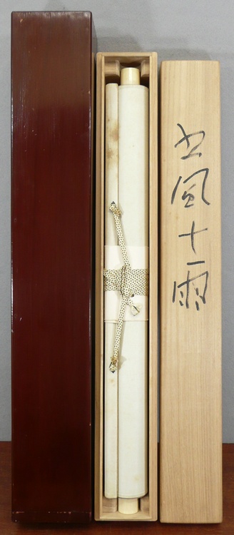 くまがい・もりかず 1880年岐阜県生まれ。東京美術学校西洋画科卒、同期に青木繁。1916年二科会推挙、1930年代より墨絵を描き始め、晩年は書も書いた。1940年代から後に「熊谷様式」と呼ばれる独特な平面構成の作品を手掛けるようになる。1947年二紀会創立に参加、後に退会し無所属。愛知県の資産家、木村定三氏が守一の作品に惚れ、全面的に支援、広く日本画壇に名を知られ、孤高の画家・画壇の仙人と称される。1967年文化勲章辞退、1972年勲三等叙勲辞退、1977年歿、享年97才 |