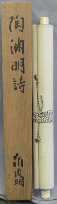 中国の詩人陶淵明の作「移居」が書かれた掛軸で、