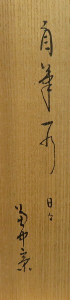 ほりのうち・そうかん 大正8年京都生まれ 別号長生庵 京都大学理学部卒 代々表千家の宗匠を務める茶家、堀内家の10世不仙斎の三男 表千家即中斎のもとで修業 兄11世幽峰斎の急逝のため堀内家十二世を継ぐ 平成10年に分明斎に家督を譲り宗心となる 平成27年歿 |