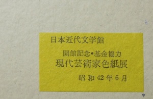 昭和42年6月、日本近代文学館 開館記念・募金協力として開催された「現代芸術家色紙展」への出展作です。